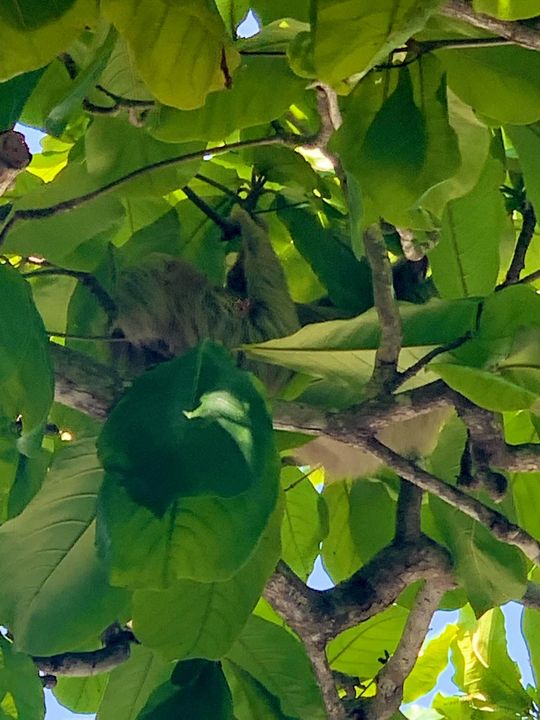 Afterwards we found ourselves with a beautiful sunny day (it had been raining most of the night before) so we decided to take advantage of that and Adam found us a park near the beach to explore. Unfortunately two of the parks we went to were locked up and closed, but we were able to take a family walk along some beautiful beaches, and see a sleeping sloth in one of the trees we passed.