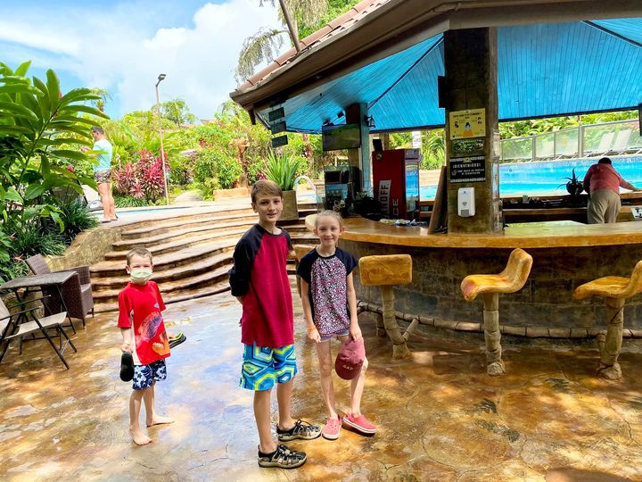 We began part 2 of our trip by checking out of our airbnb in La Fortuna/Arenal and then heading to a hot springs resort that came with our ziplining adventure, but which we had to postpone due to a lightning and thunder storm the day before. We stopped there for some mud baths, cold pools, and hot springs before driving 3 hours to our next location of Coco beach East of Tamarindo on the Gold coast.