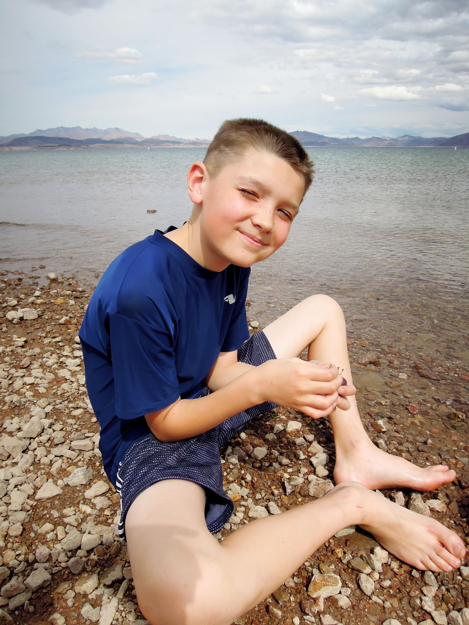 After our Hoover Dam field trip, the kids were all a big restless and crazy and so I thought it might be a good idea to stop and give them some time to just play and get their wiggles out. So we took a different way home that drove right next to Lake Mead. I talked to a guard at the ranger station and asked about a good place to stop and he suggested Boulder Beach. So that is where we decided to stop. It ended up just being perfect because we were able to drive right down next to the beach and had the whole place to ourselves (at least for the first 20 minutes or so). Then slowly a few other cars started arriving as well. But it was fun to just sit and eat some snacks and skip rocks for awhile.