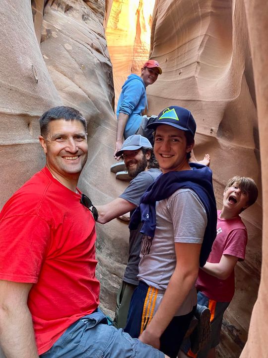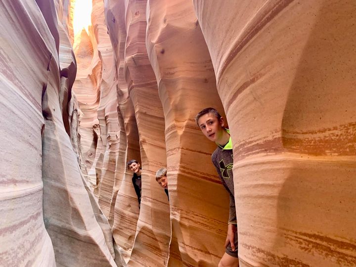 Ady, Dawson, and Jamis then found some “floofy sand” to play and jump in, so the older boys and I kept exploring and found another slot canyon to climb down. I may have ruined my favorite yoga pants and jacket in the process, but it was a blast! 😂 I so do love climbing!