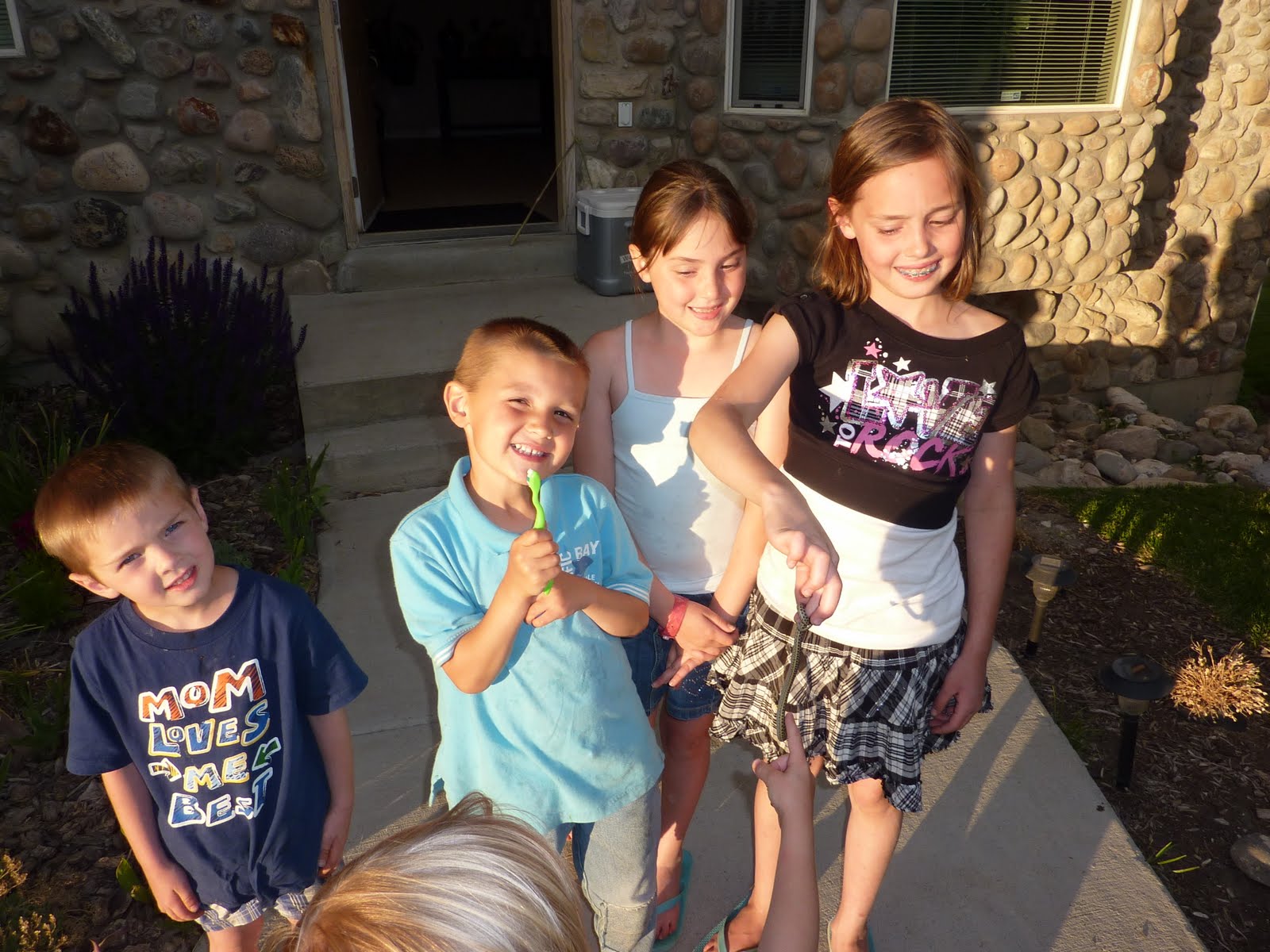 That evening the kids also found a little gardner snake that they had fun holding and playing with for awhile until we made them let it go. It was funny to see how nervous they all got when the snake started moving and they would often freak out and run away screaming every time it did. Too cute.